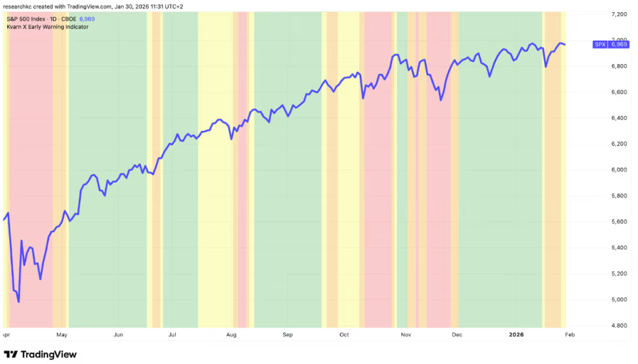 Kvarn X Early Warning Indicator on kuluneen viikon aikana kääntynyt oranssista väristä takaisin keltaiseen. Tämä viittaa entistä vahvemmin viime viikon alussa tulliuhkausten laukaiseman hermoilun olevan jäämässä taakse.