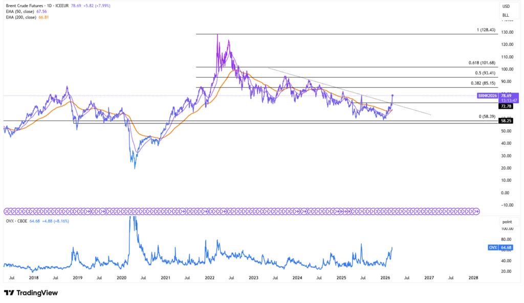 Tällä hetkellä markkina hinnoittelee ennen kaikkea epävarmuutta ja riskipreemiota. Mutta jos öljyvirrat alkavat oikeasti heiketä (miinat, jatkuvat iskut, satamasulut, tai se että laivayhtiöt välttelevät aluetta pidempään), markkina voi siirtyä otsikkopreemiosta paljon konkreettisempaan toimitus- ja varastopreemioon.