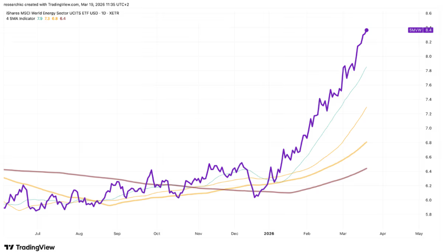 Yksi toimiala, jossa absoluuttiset tuotot eivät ole jääneet epäselviksi, on energiasektori (iShares MSCI World Energy Sector (5MVW)). Energiasektori on käynnissä olevan geopoliittisen kriisin ilmeinen voittaja, ja siihen liittyvien yhtiöiden kurssit ovat erittäin vahvassa nousussa.