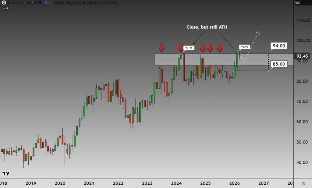 Vahvat luvut – ja teknisesti otan sen, mitä markkina tarjoaa: nyt on saatu tuore kuukausitason ATH-sulku. Niukasti, mutta selvästi.