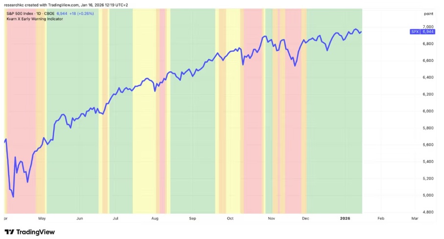 Syitä optimismiin antaa myös se, että markkinoiden hermostuneisuutta indikoiva Kvarn X Early Warning Indicator on edelleen pysynyt vihreän värin puolella. Niin kauan kuin tämä asiantila säilyy, emme näe aihetta odottaa korjausliikkeitä.