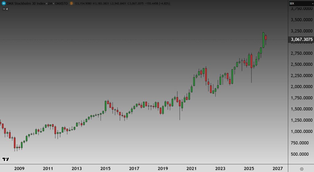 Ajoitus on varsin hyvä. Ruotsin pääindeksi OMXS30 – joka seuraa 30 suurinta ja vaihdetuinta yhtiötä, kuten Volvoa, Ericssonin ja H&M:ää (joista kaksi löytyy myös tämän päivän valinnasta) – teki helmikuussa jälleen uuden kaikkien aikojen huipun.