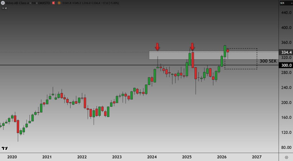👉 Itselleni kiinnostavin seurattava alue on 290–340 SEK.