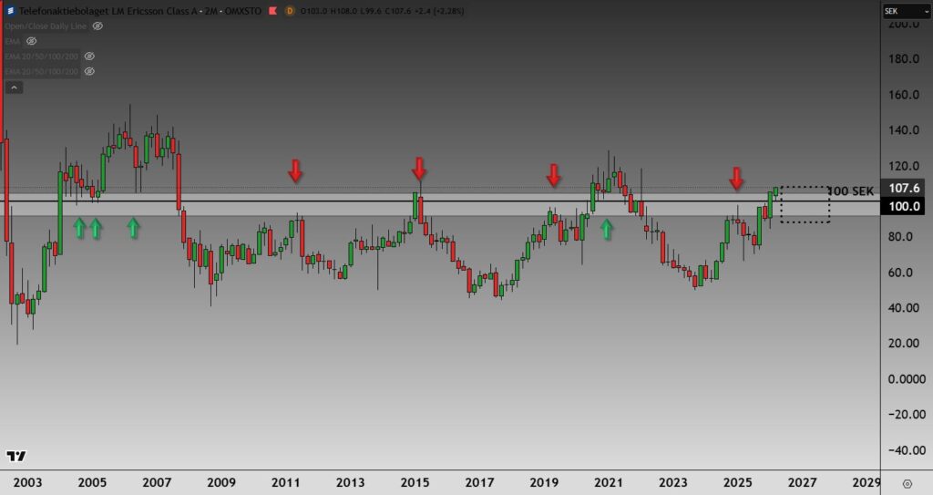 👉 Nyt kun taso on rikottu, pidän teknisesti järkevänä, että liike voi ulottua noin 88 SEK -tasolle.