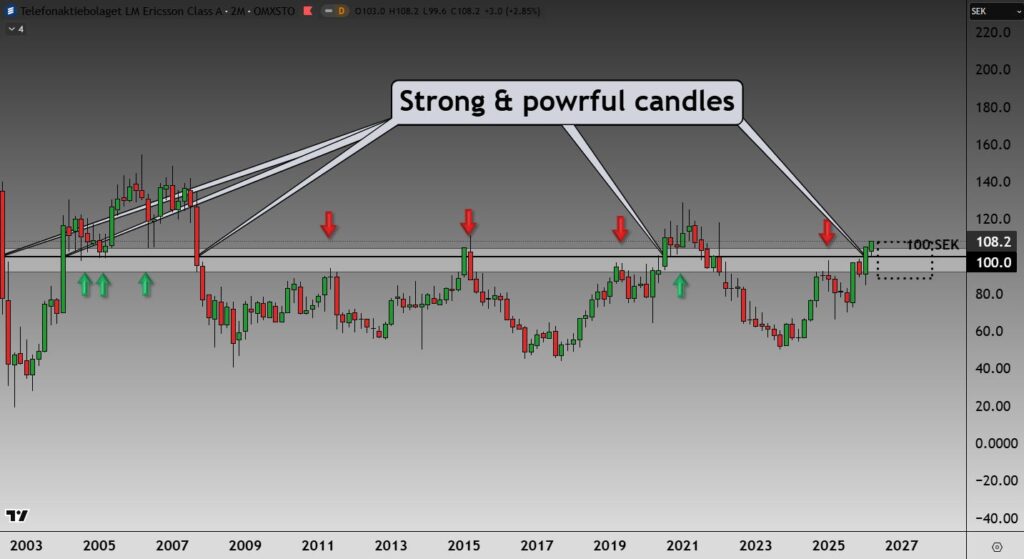 Olipa liikkeen taustalla vahva ostovoima tai vahva myyntivoima, tällaisen tason rikkominen vaatii aina voimaa. Tällä hetkellä Ericssonin hinta on jo tämän tason yläpuolella.
