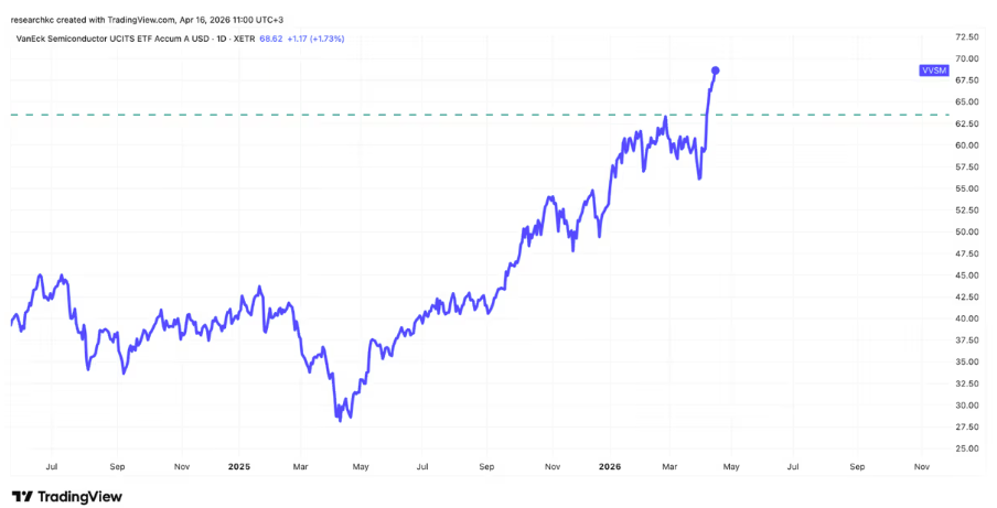 Puolijohteisiin sijoittavan VanEck Semiconductor ETF -rahaston (VVSM) kurssi on jo kohonnut uusiin kaikkien aikojen ennätyslukemiin.