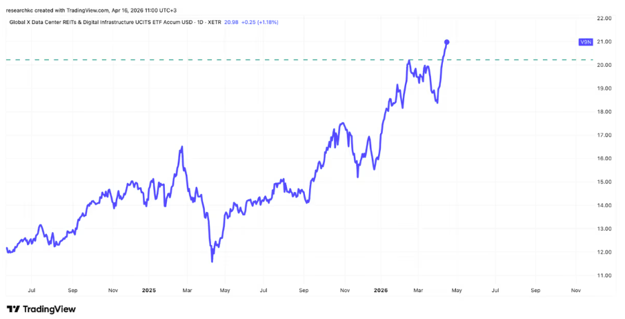 Samoin tekoälyyn liittyvien datakeskusten teemaan sijoittavan Global X Data Center REITs & Digital Infrastructure ETF -rahaston (V9N).