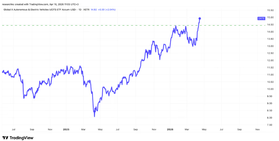 Vahvalta teemalta näyttää myös autonomisiin ja sähköisiin ajoneuvoihin sijoittava Global X Autonomous & Electric Vehicles ETF -rahasto (DR7E).